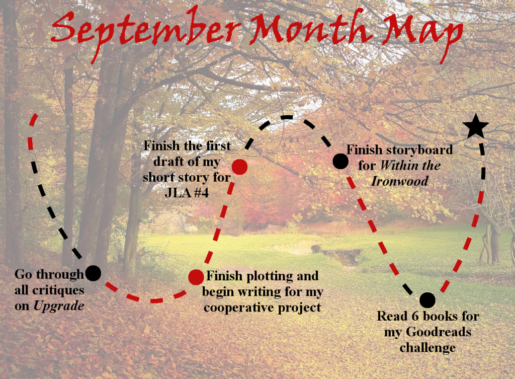 I didn’t touch the storyboard this month, which is disappointing, but I also was juggling a lot of other things, so I’m not going to be upset with myself about this. In October, I will try to find time to work on it.